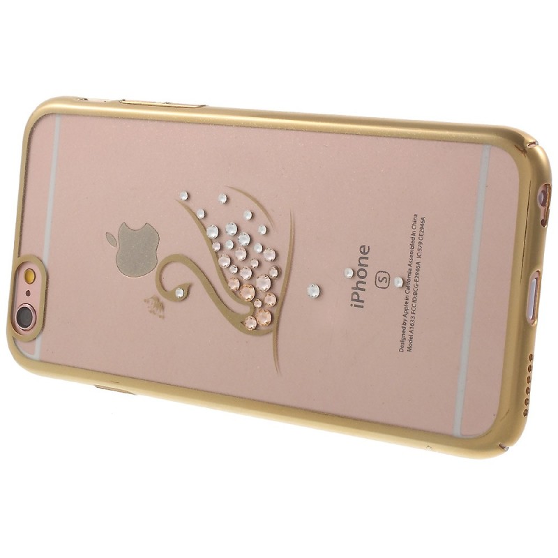 Apple iPhone 6 (6s) „Kavaro“ Swan plastikinis skaidrus permatomas auksinis dėklas su kristalais / Priedai.lt