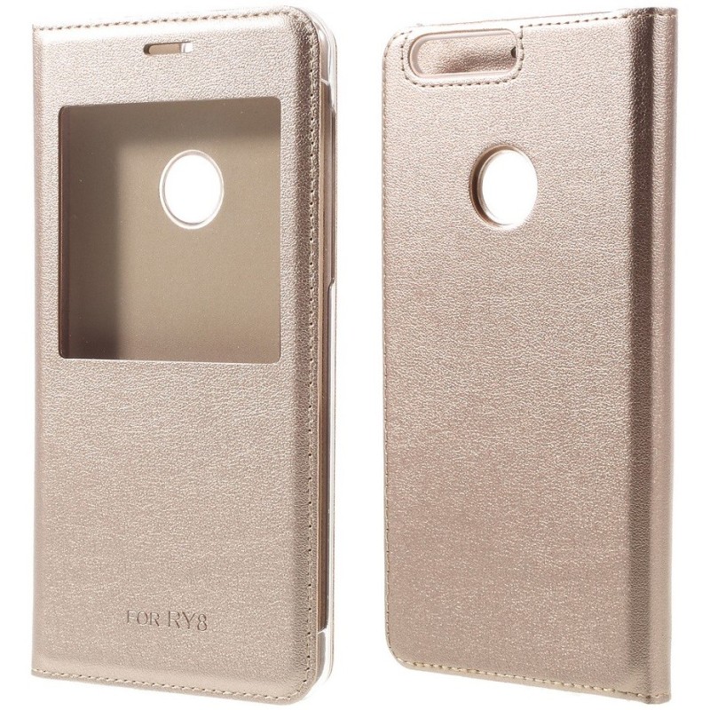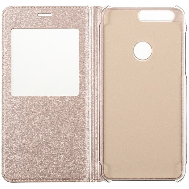Huawei Honor 8 auksinis odinis atverčiamas „Smart Window“ dėklas su langeliu / Priedai.lt