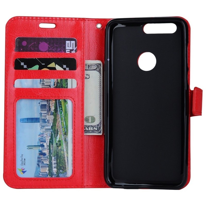 Huawei Honor 8 atverčiamas raudonas odinis dėklas, knygutė - piniginė / Priedai.lt