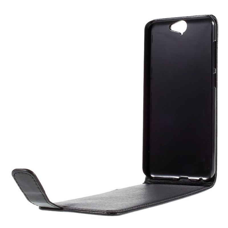HTC One A9 klasikinis vertikaliai atverčiamas juodas odinis dėklas / Priedai.lt