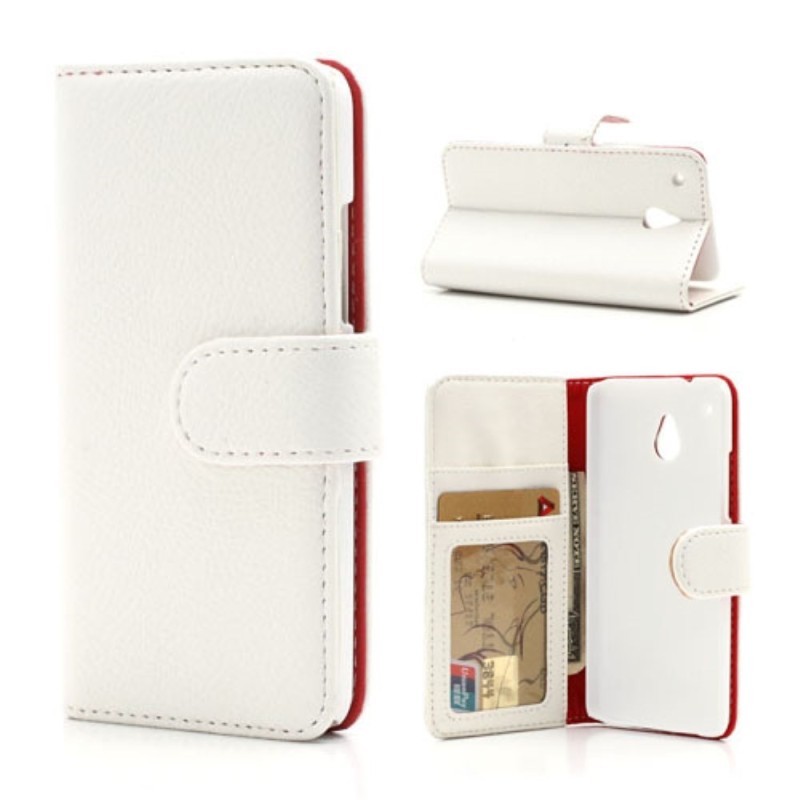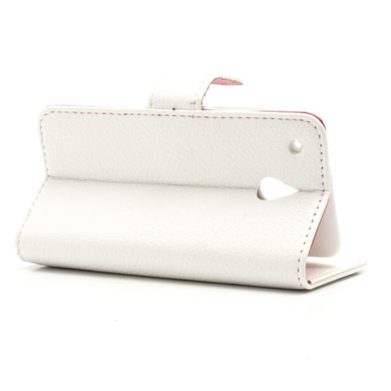 HTC One mini M4 atverčiamas baltas odinis Litchi dėklas - piniginė / Priedai.lt