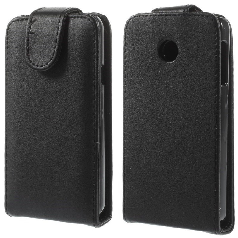 Huawei Ascend Y330 klasikinis vertikaliai atverčiamas juodas odinis dėklas / Priedai.lt