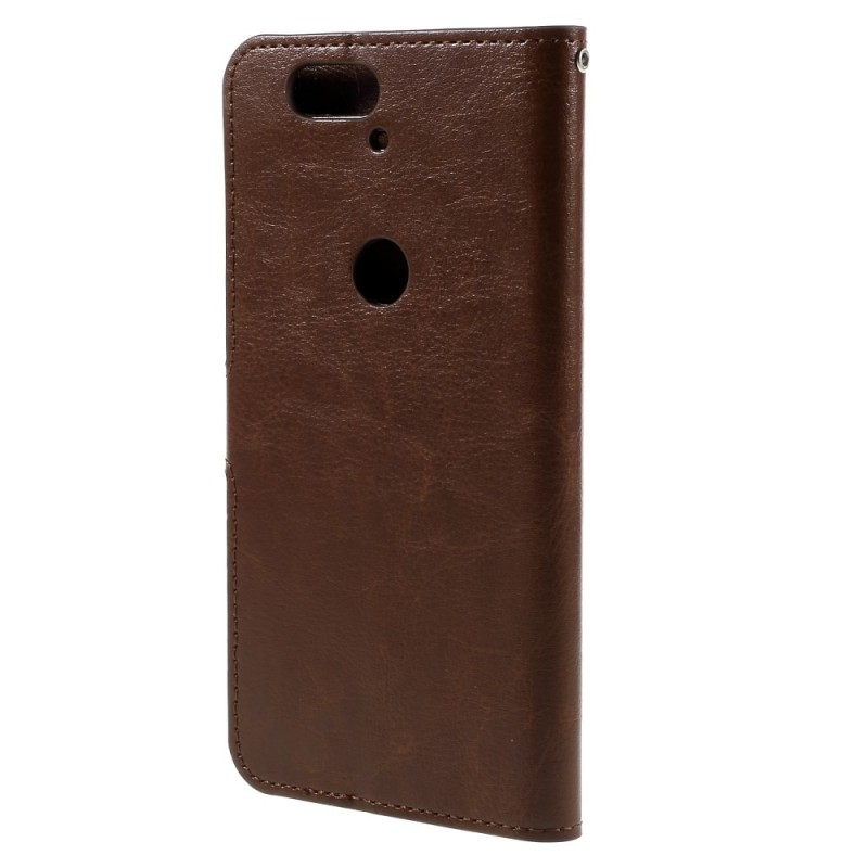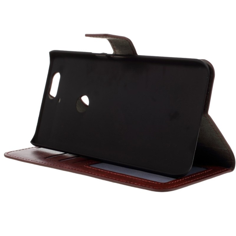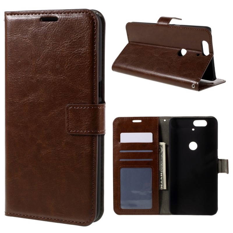 Huawei Nexus 6P atverčiamas rudas odinis dėklas - piniginė / Priedai.lt