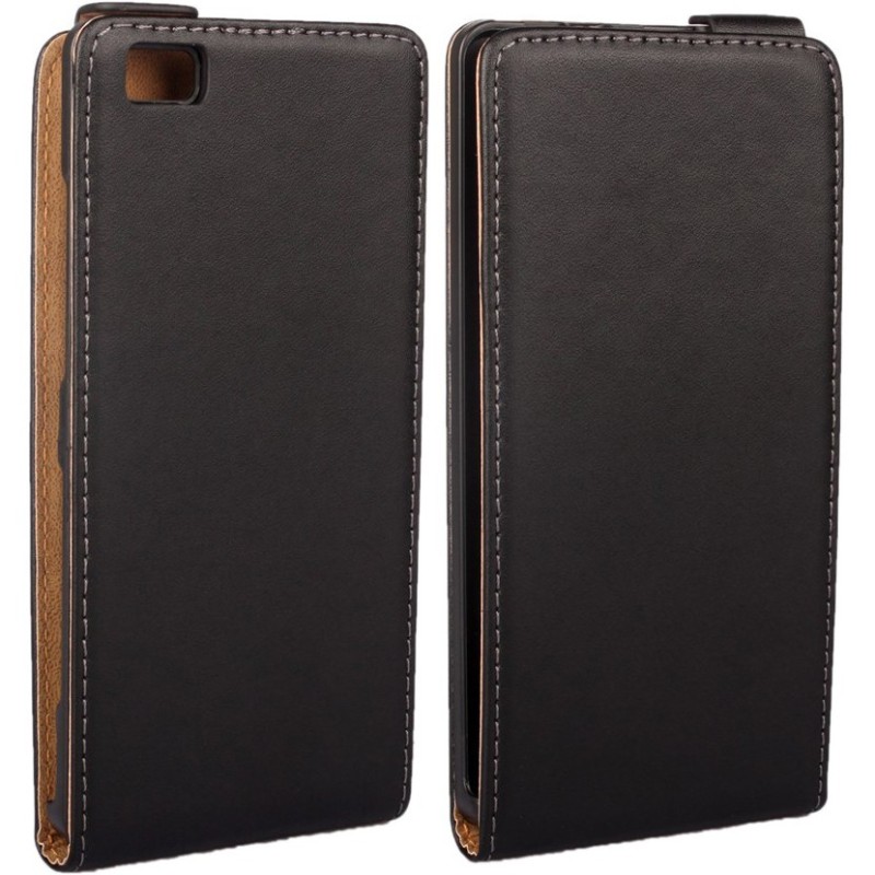 Huawei P8 Lite klasikinis vertikaliai atverčiamas juodas odinis dėklas / Priedai.lt