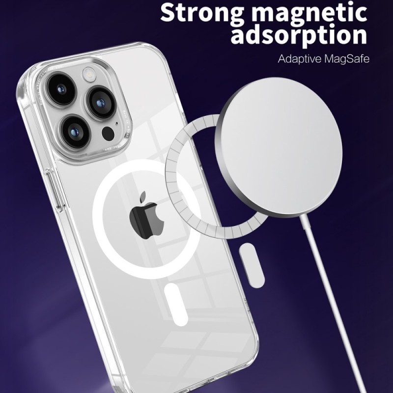 „MagSafe“ serijos išskirtinis dėklas dėl viduje integruoto magneto leis patogiai naudotis bevielio krovimo funkcija su MagSafe ar kitu Qi krovikliu.
