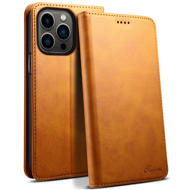 „Suteni“ atverčiamas dėklas - šviesiai rudas (iPhone 15 Pro Max)