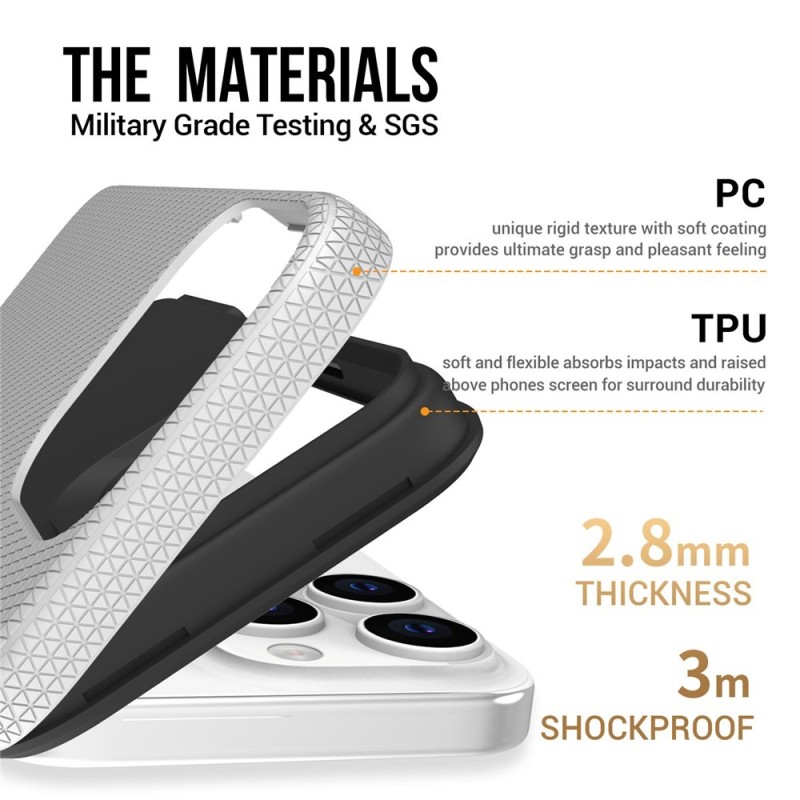- Dviguba apsauga: vidinė dalis iš minkšto silikono (TPU), išorinė dalis iš tvirto kieto silikono,