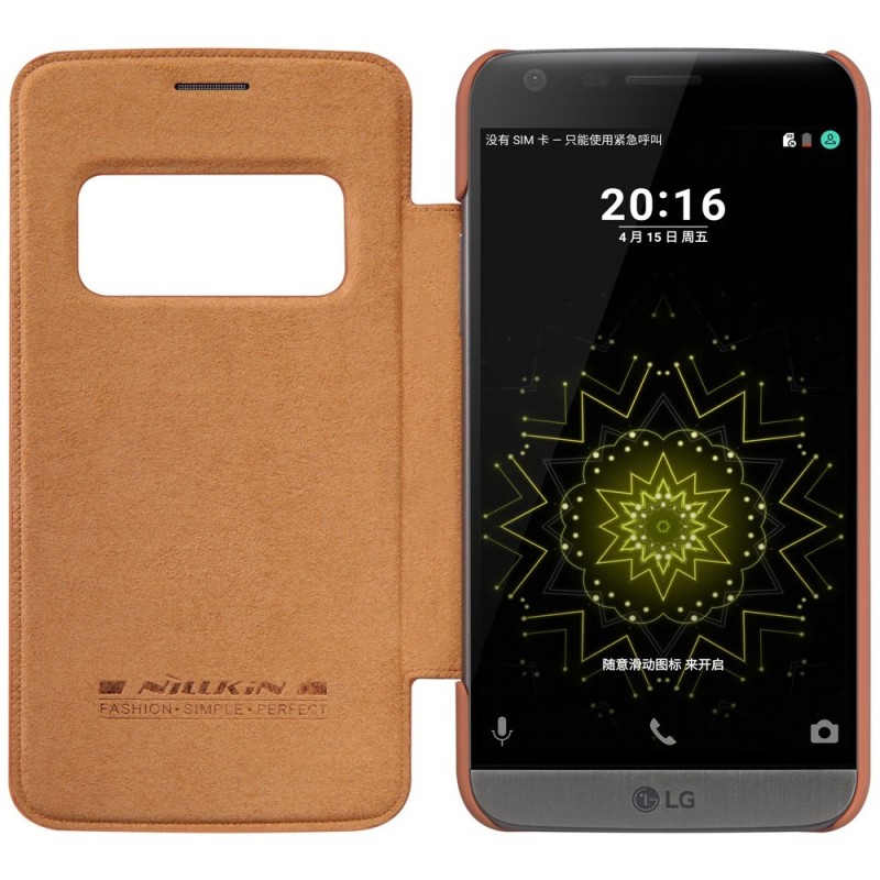 Prabangus „Nillkin“ Qin serijos rudas odinis atverčiamas LG G5 (H850) dėklas / Priedai.lt