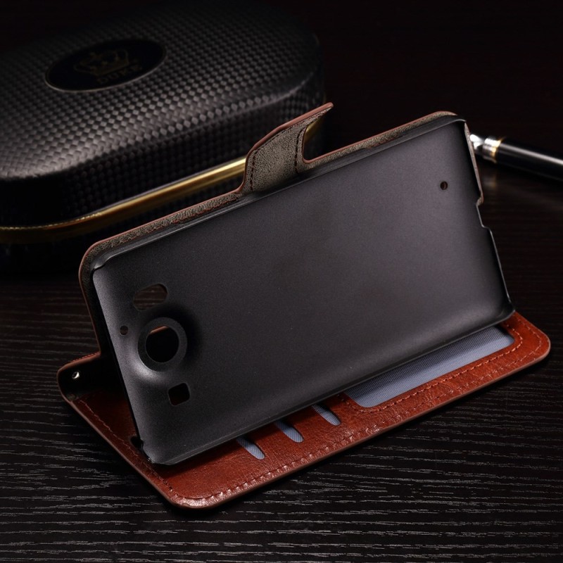 Microsoft Lumia 950 atverčiamas rudas odinis dėklas - piniginė / Priedai.lt