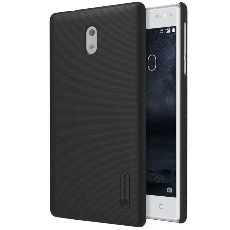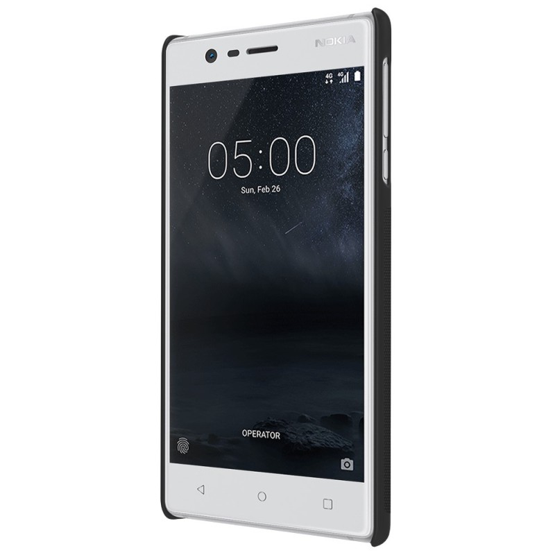 „Nillkin“ Frosted Shield dėklas - juodas + apsauginė ekrano plėvelė (Nokia 3)
