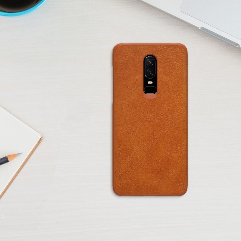 „Nillkin“ Qin atverčiamas dėklas - rudas (OnePlus 6)