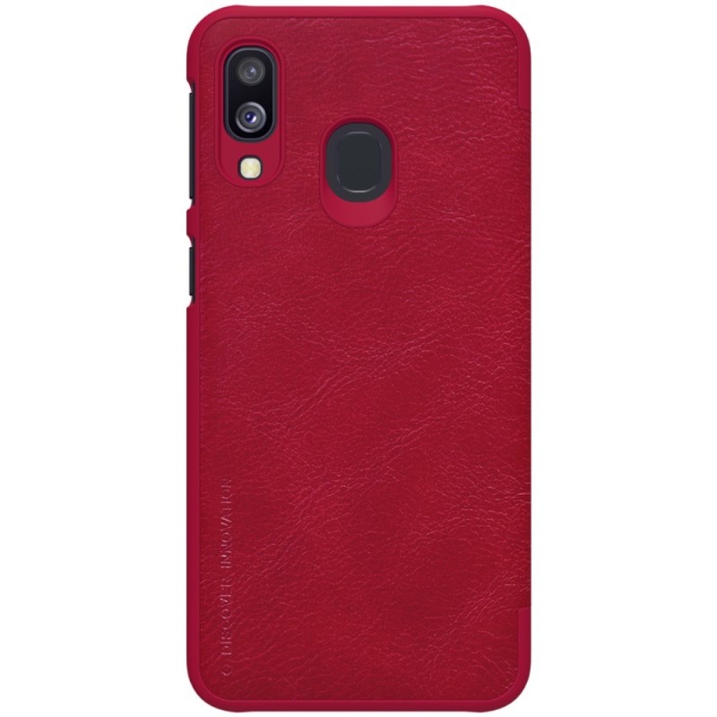 Prabangus „Nillkin“ Qin serijos raudonas odinis atverčiamas Samsung Galaxy A40 (A405F) dėklas / Priedai.lt