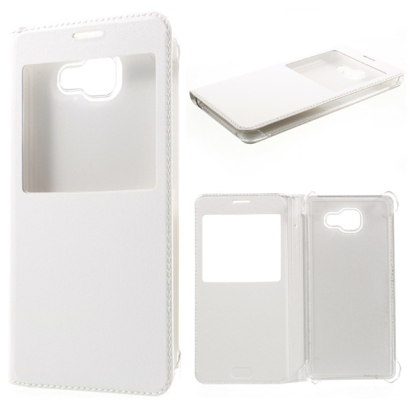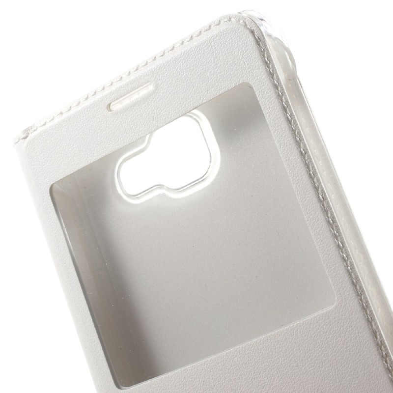 „Smart Window“ atverčiamas odinis dėklas - baltas (Galaxy A7 2016)