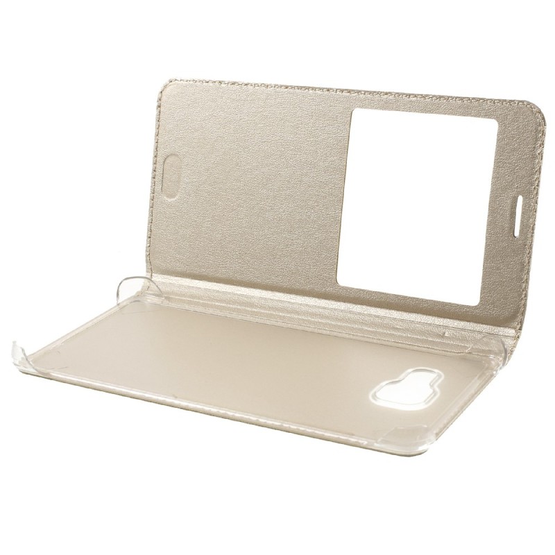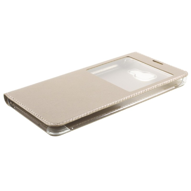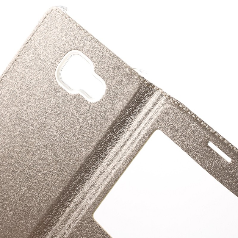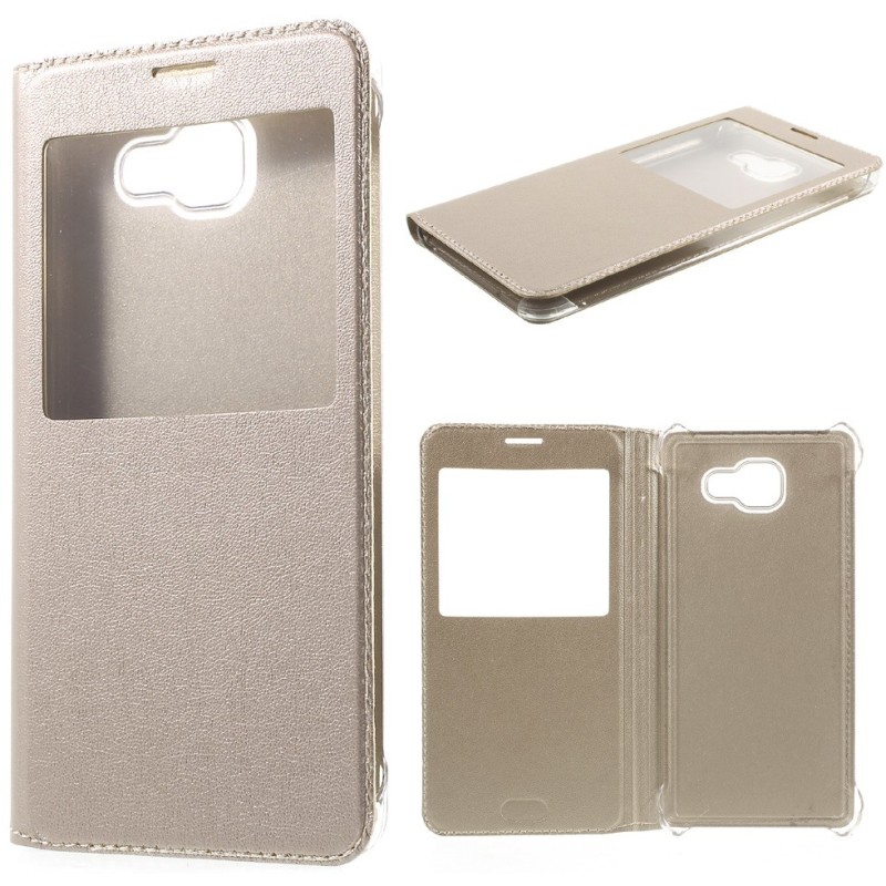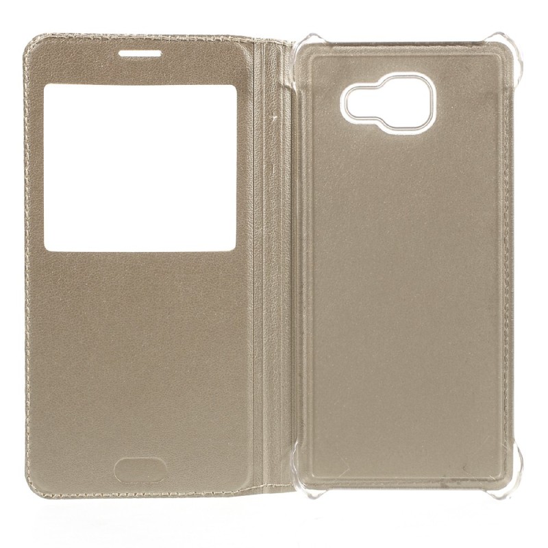 „Smart Window“ atverčiamas odinis dėklas - auksinis (Galaxy A7 2016)