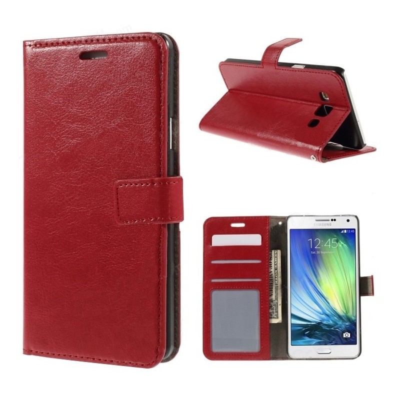 Samsung Galaxy A7 atverčiamas raudonas odinis dėklas - piniginė / Priedai.lt