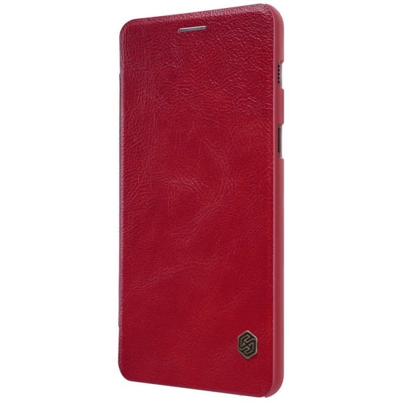 Prabangus „Nillkin“ Qin serijos raudonas odinis atverčiamas Samsung Galaxy A8 2018 (A530F) dėklas / Priedai.lt