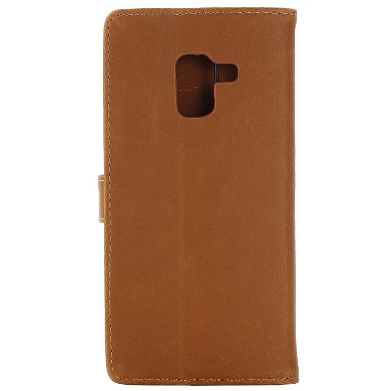 Samsung Galaxy A8 2018 (A530F) atverčiamas rudas odinis retro dėklas - piniginė / Priedai.lt