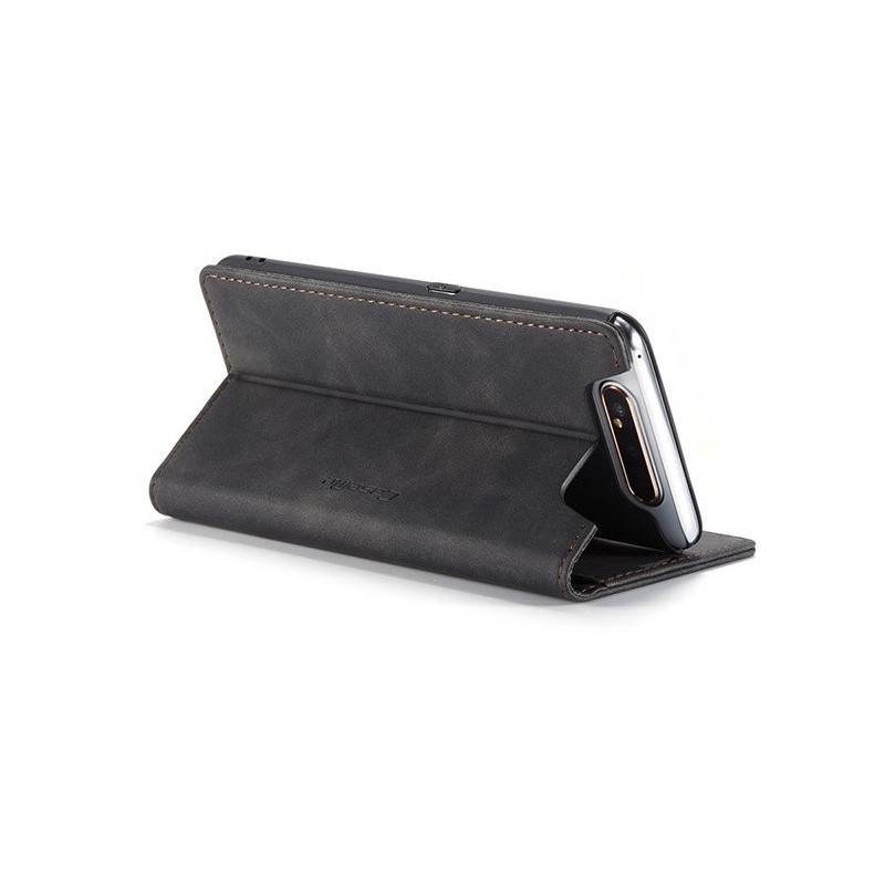 Samsung Galaxy A80 (A805F) CaseMe Retro solidus atverčiamas juodas odinis dėklas - knygutė | Priedai.lt