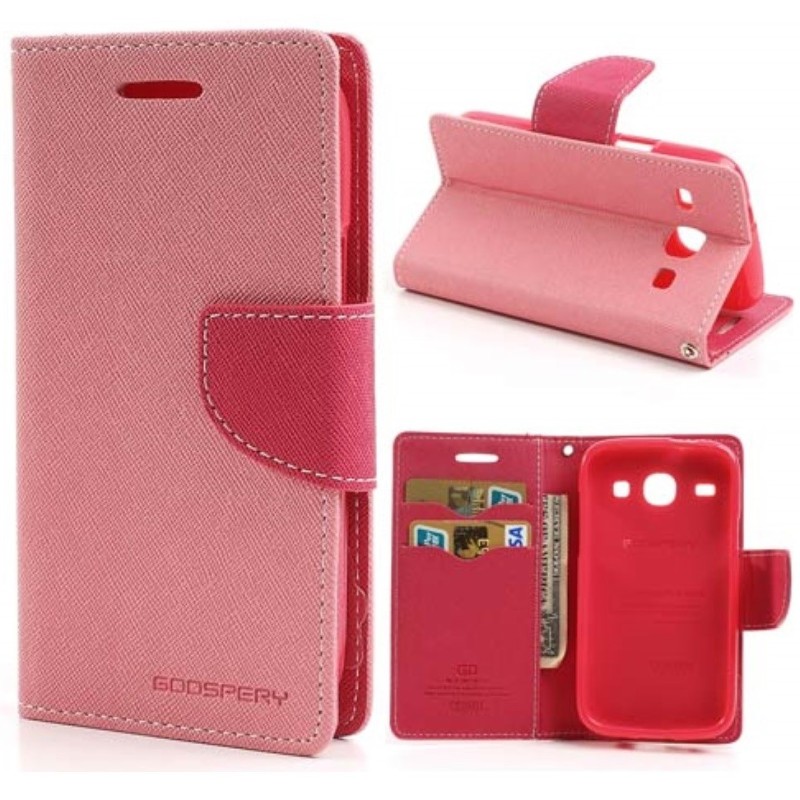 „Mercury“ Samsung Galaxy Core (i8260, i8262) rožinis odinis atverčiamas dėklas - piniginė / Priedai.lt