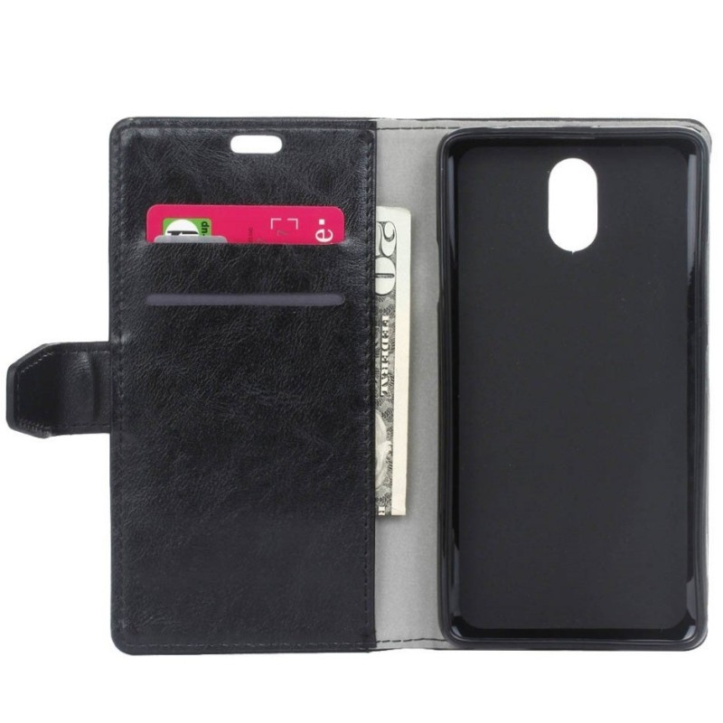 Samsung Galaxy J7 2017 (J730) atverčiamas juodas odinis dėklas - piniginė / Priedai.lt