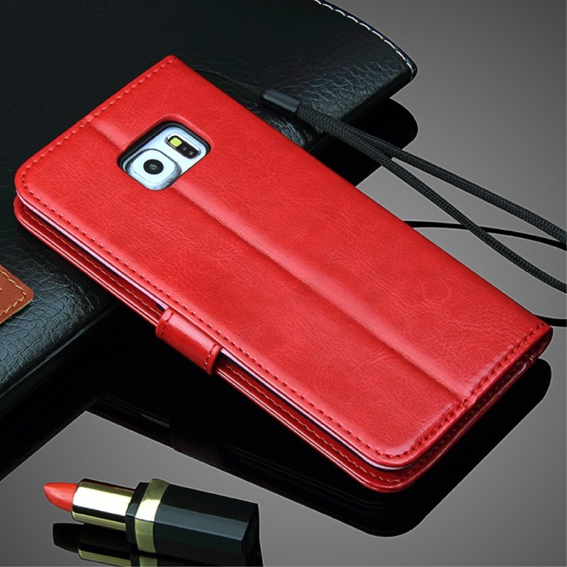 Samsung Galaxy S6 Edge+ (G928) atverčiamas raudonas odinis dėklas - piniginė / Priedai.lt