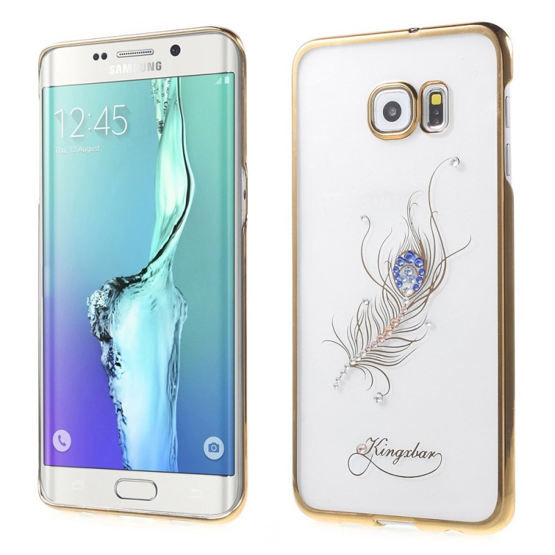 Samsung Galaxy S6 Edge+ (G928) Kingxbar Crystal Icon Pro Peacock Swarovski plastikinis skaidrus permatomas auksinis dėklas su kr