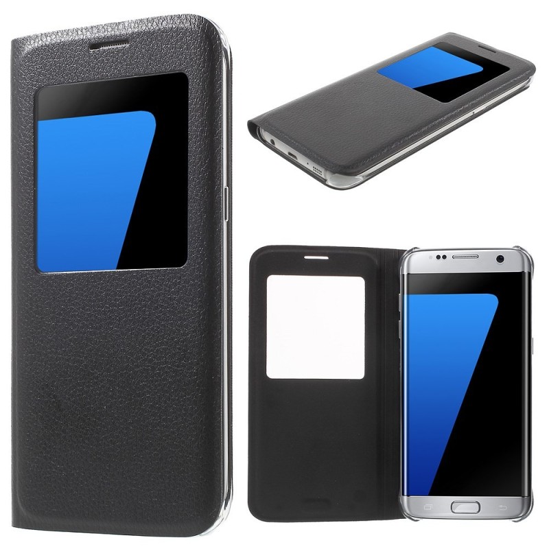 Atverčiamas dėklas su langeliu - juodas (Galaxy S7 Edge)