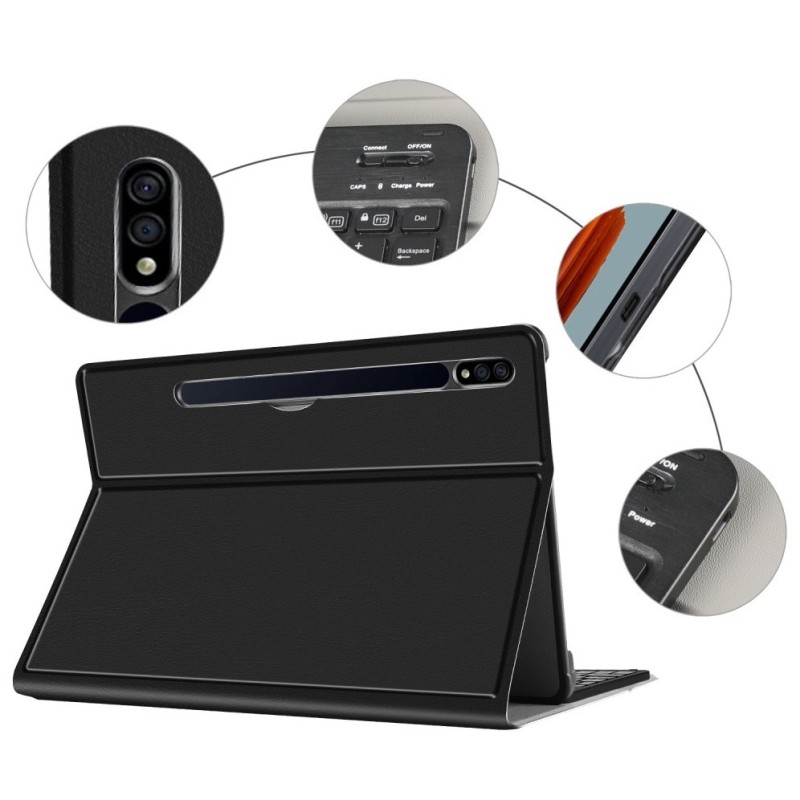 - Dėkle integruota Bluetooth belaidė klaviatūra su įkraunama lyčio jonų baterija,