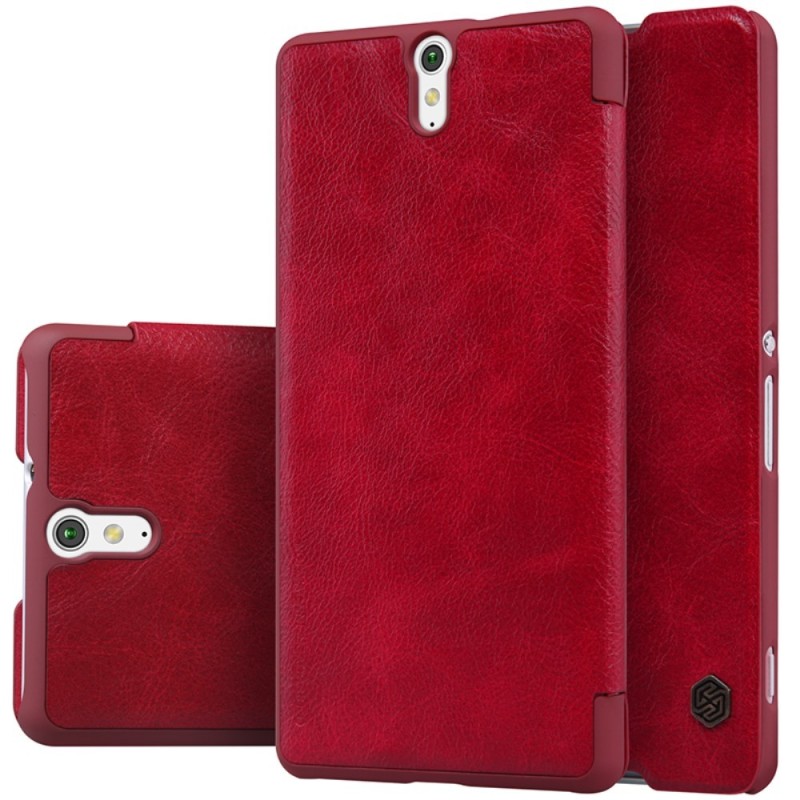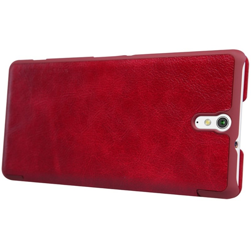 Prabangus „Nillkin“ Qin serijos raudonas odinis atverčiamas Sony Xperia C5 Ultra dėklas / Priedai.lt
