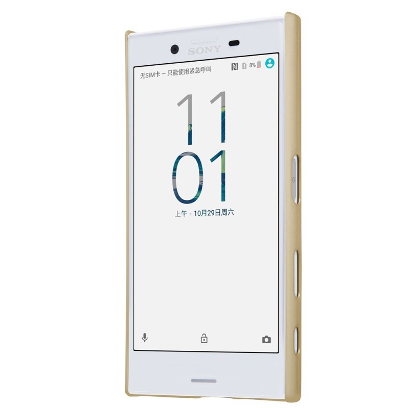 Nillkin Frosted Shield Sony Xperia X Compact (F5321) auksinis plastikinis dėklas + apsauginė ekrano plėvelė / Priedai.lt