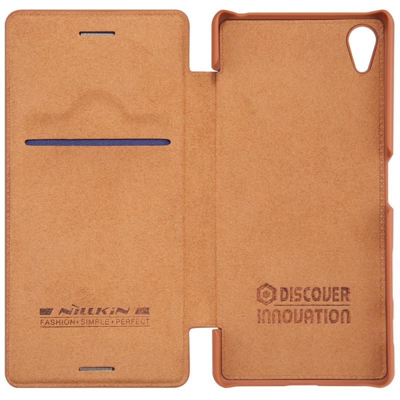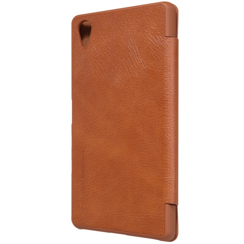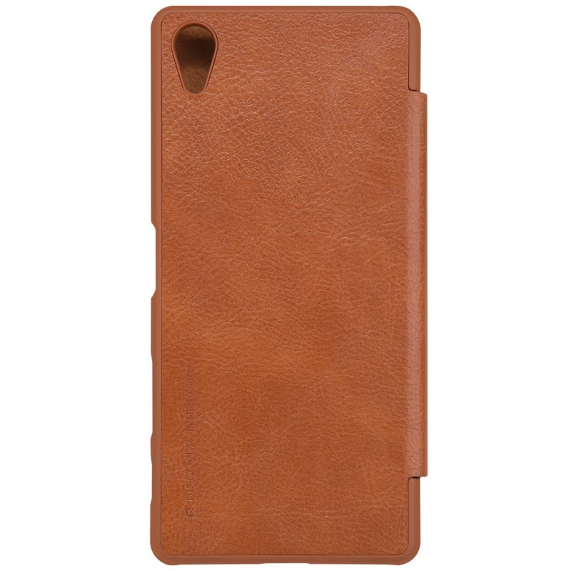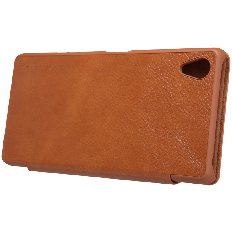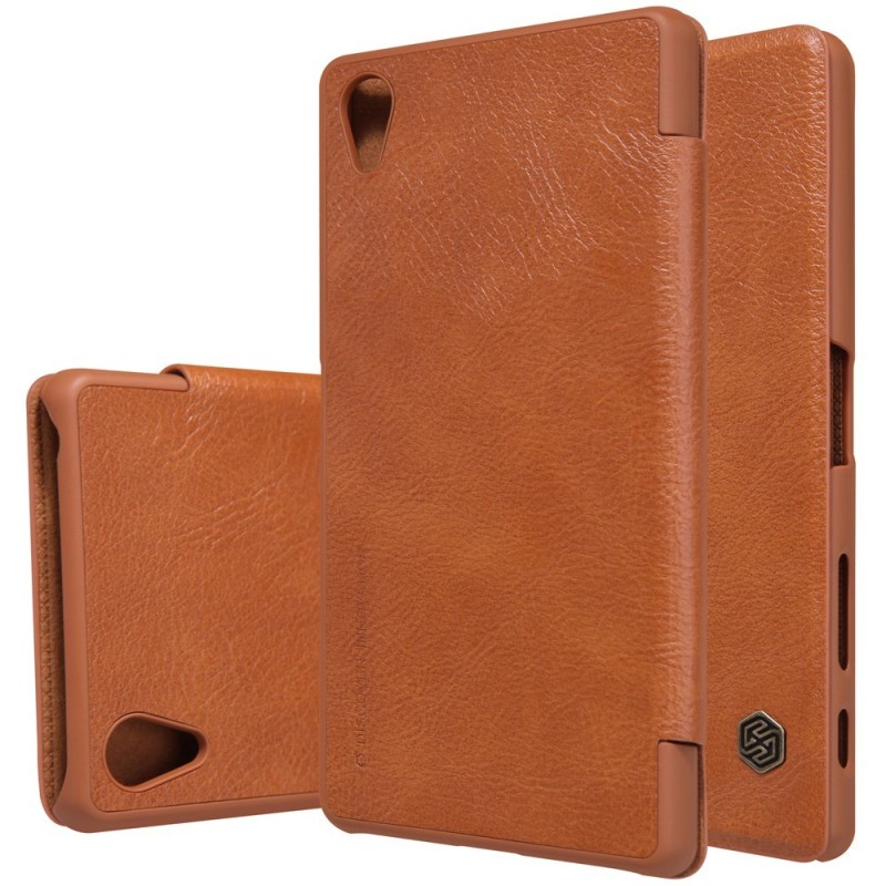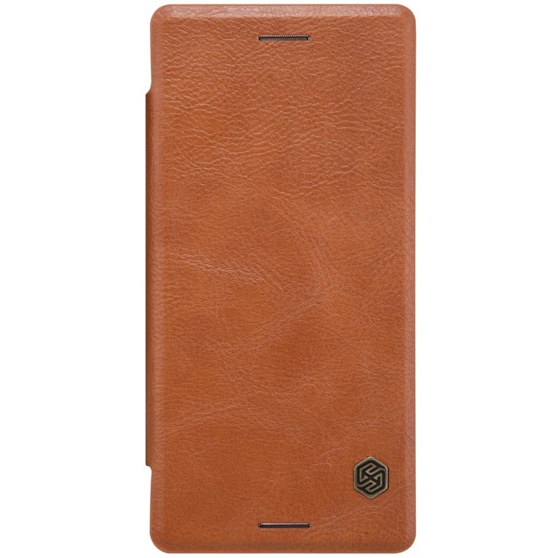 Prabangus „Nillkin“ Qin serijos rudas odinis atverčiamas Sony Xperia X (F5121, F5122) dėklas / Priedai.lt