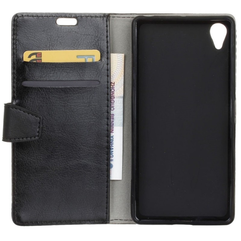 Sony Xperia X Performance atverčiamas juodas odinis dėklas, knygutė - piniginė / Priedai.lt