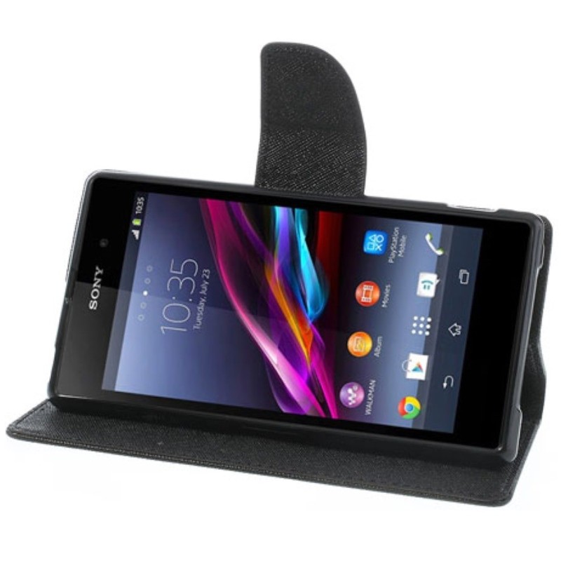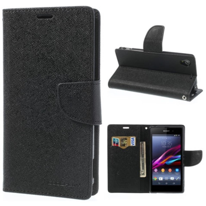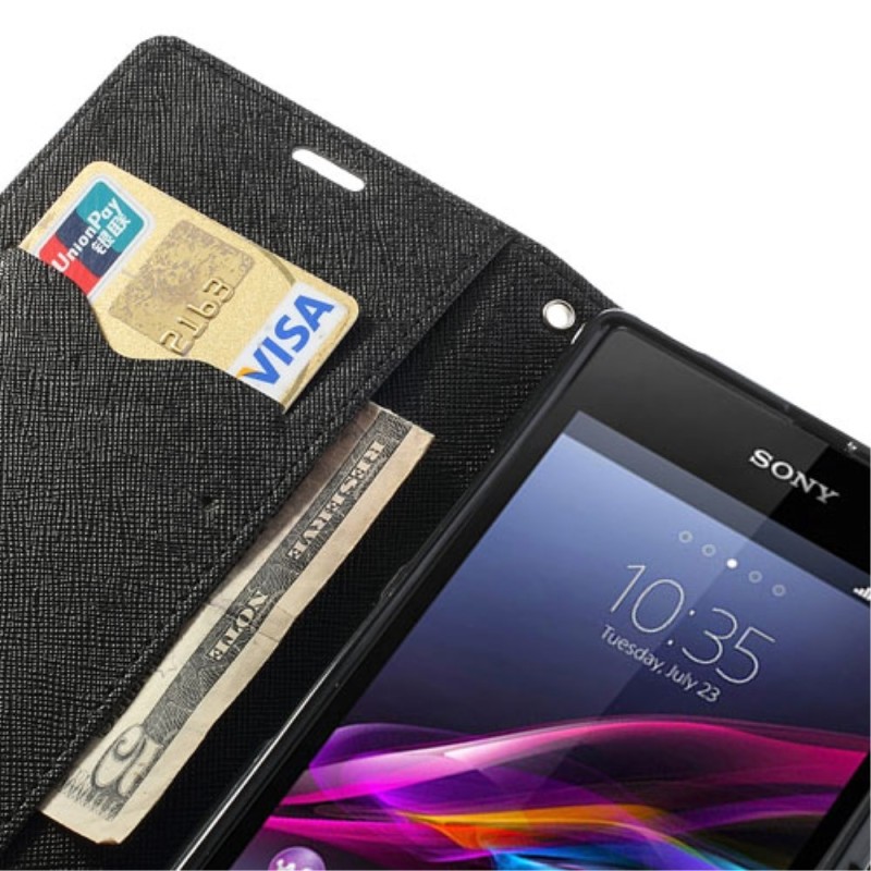 „Mercury“ Fancy atverčiamas dėklas, piniginė - juoda (Xperia Z1)