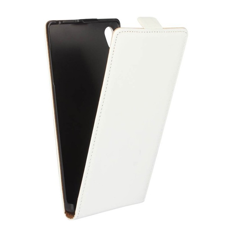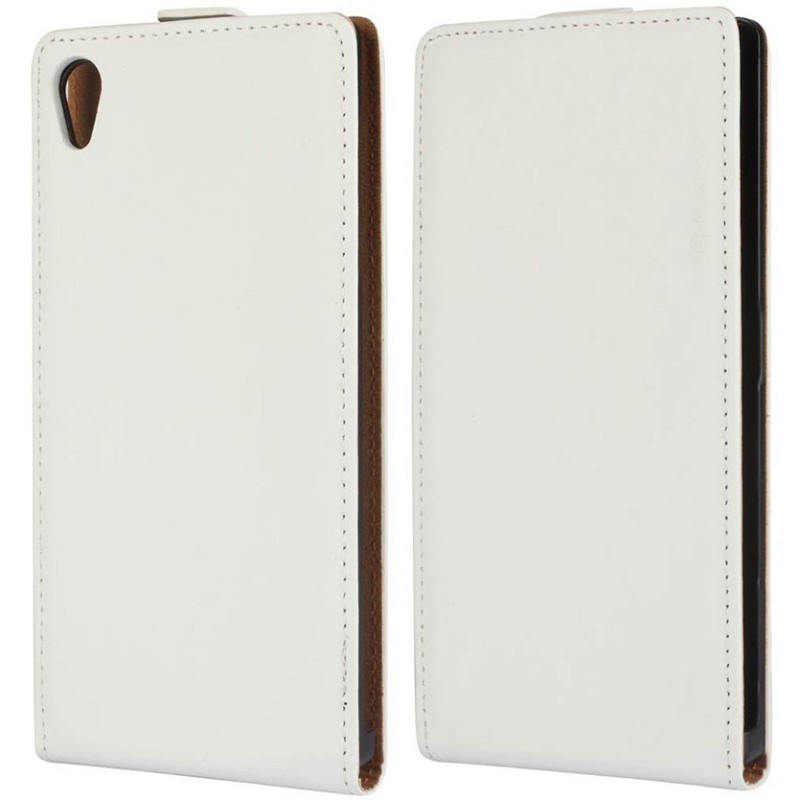Sony Xperia Z5 klasikinis vertikaliai atverčiamas baltas odinis dėklas / Priedai.lt