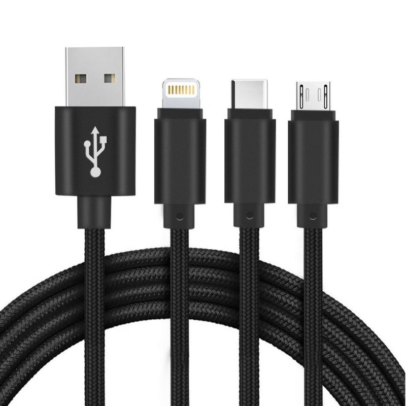 Oficialus „Setty“ 3-in-1 micro USB + Type-C + Lightning laidas, skirtas duomenų perdavimui arba įrenginio įkrovimui.