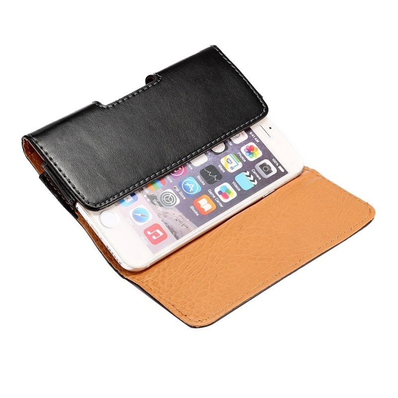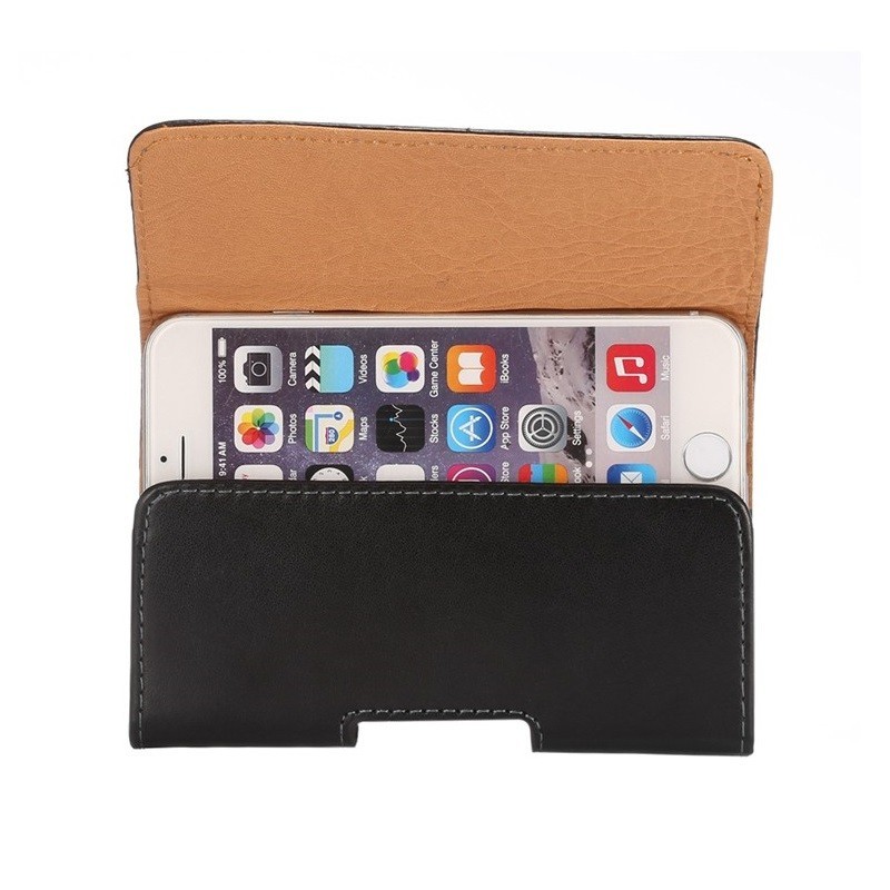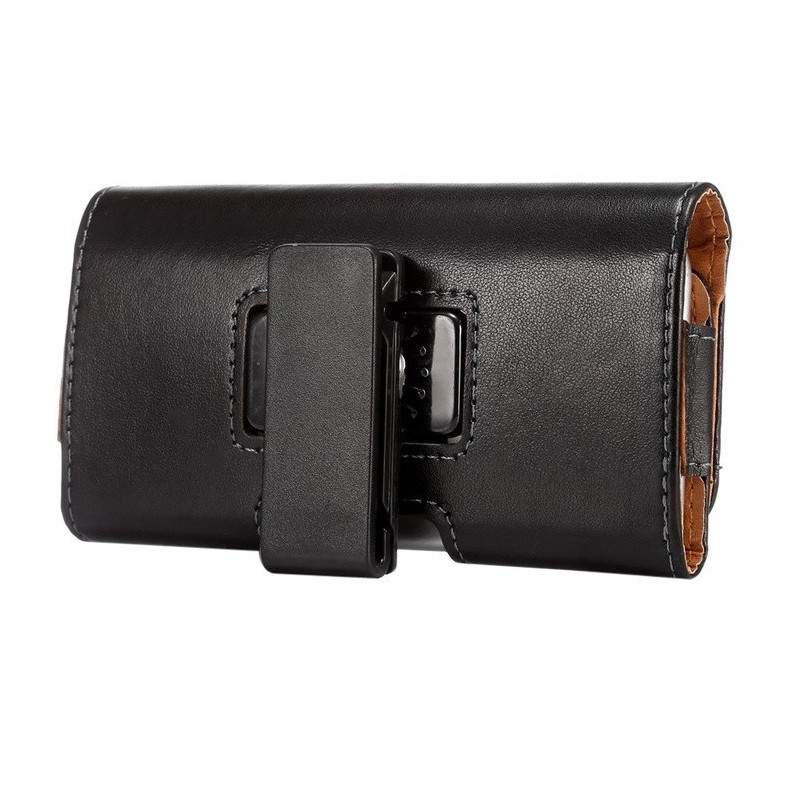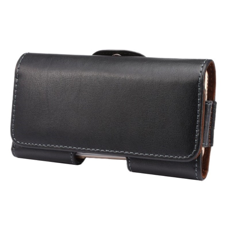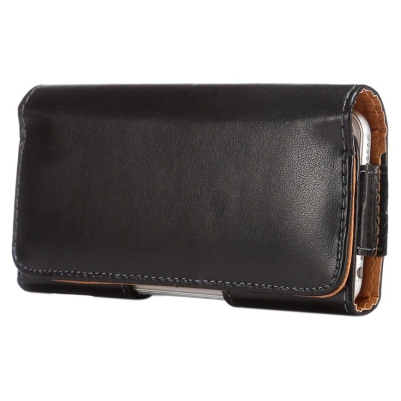 Solidus juodas odinis dėklas, segamas prie diržo ar kelnių.