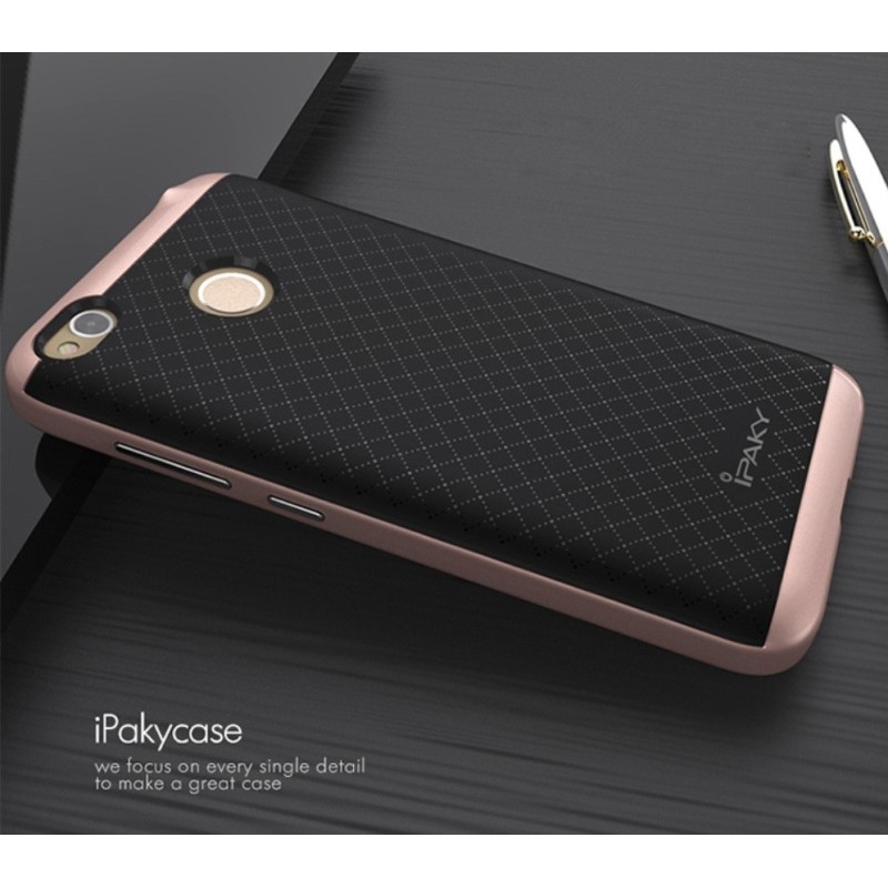 Xiaomi Redmi 4X „IPAKY“ kieto silikono TPU juodas (rožinės spalvos apvadais) dėklas - nugarėlė / Priedai.lt