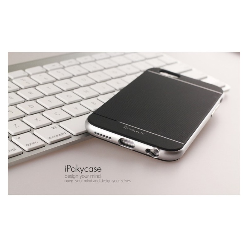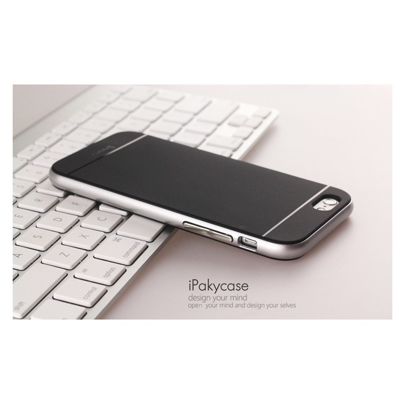 „IPAKY“ cieta silikona (TPU) apvalks - melns / sudrabs (iPhone 6 Plus / 6s Plus)