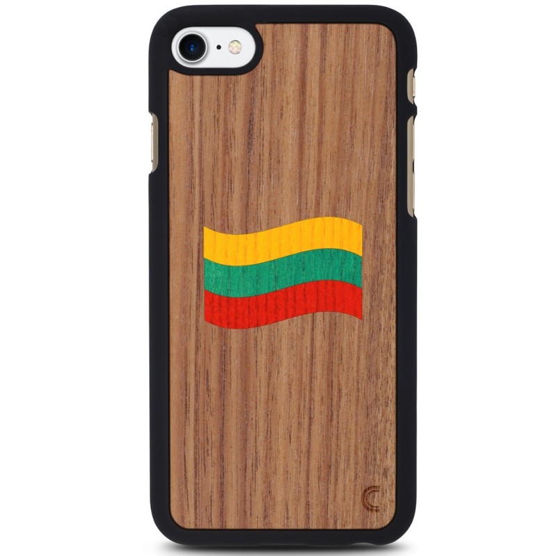 „Lietuvas karogs“ apvalks ražots no 100% dabīga koka un dzidras plastmasas. Attēls ir iegravēts uz sarkankoka, kuram piemīt itin labas gravēšanas īpašības – garantēts spilgts attēls. Koka apvalks izcels jūsu sajūtas un pārsteigs ar īsto koka aromātu. Šāds apvalks savieno moderno mākslu ar mūžīgo klasiku, lai jūsu mobilais telefons būtu origināls, moderns un vienlaikus grezns.