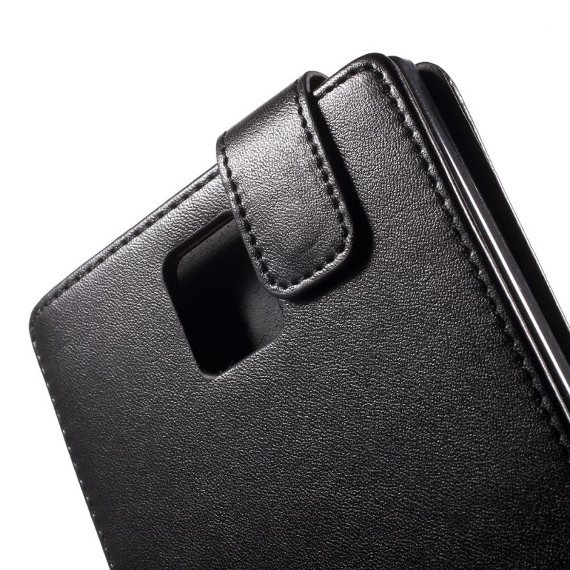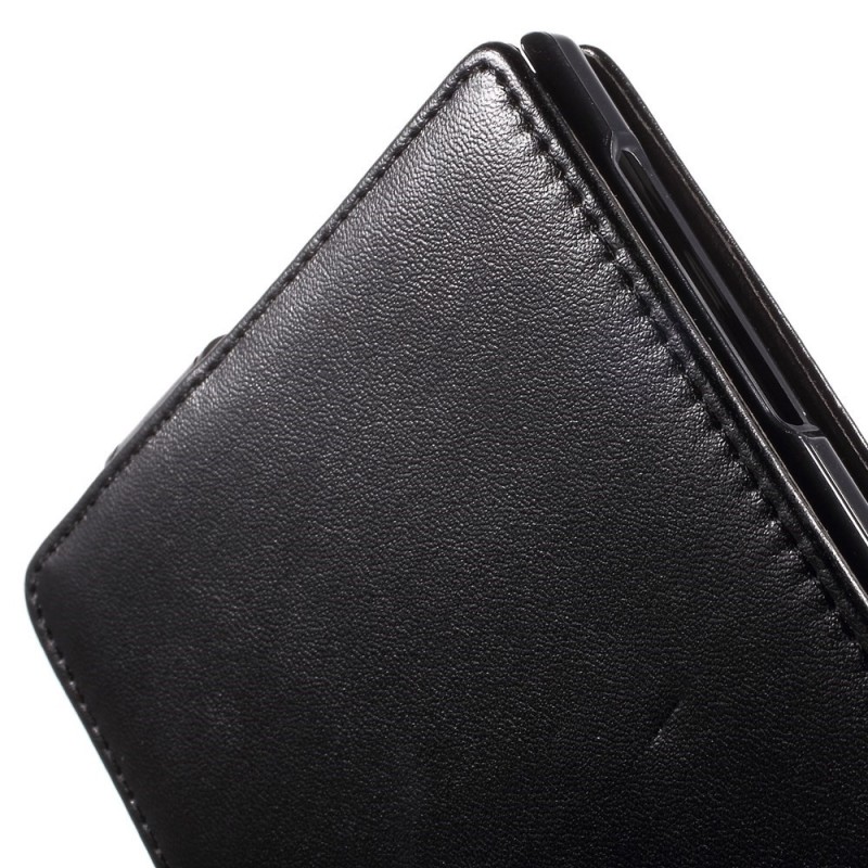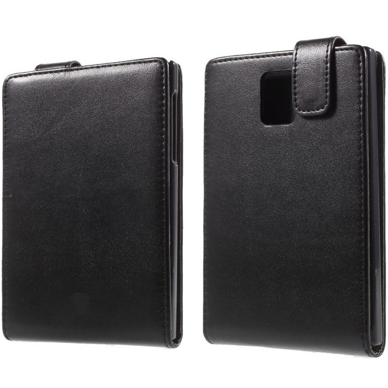 BlackBerry Passport klasisks ādas vertikāli atvēramais melns maciņš / Vacins.lv