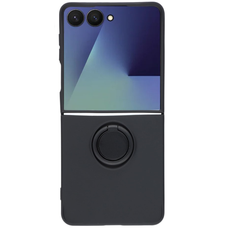 "Dechen" Ring Kickstand cieta silikona (TPU) apvalks - melns (Galaxy Flip7)