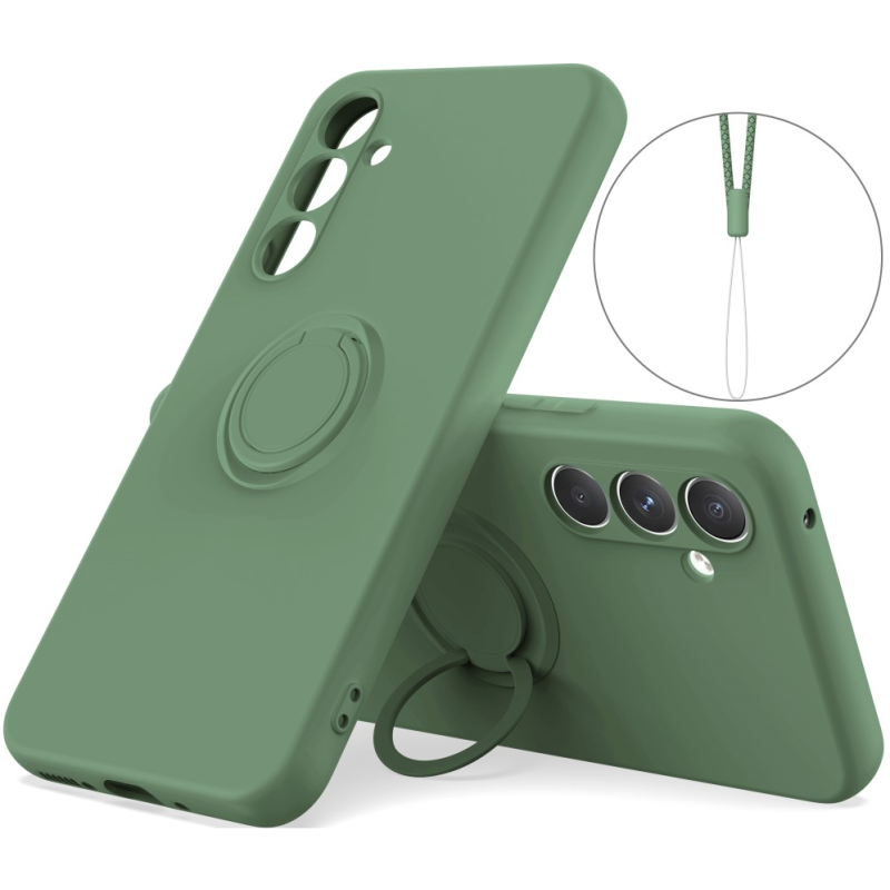 "Dechen" Ring Kickstand cieta silikona (TPU) apvalks - zils (Galaxy S24)