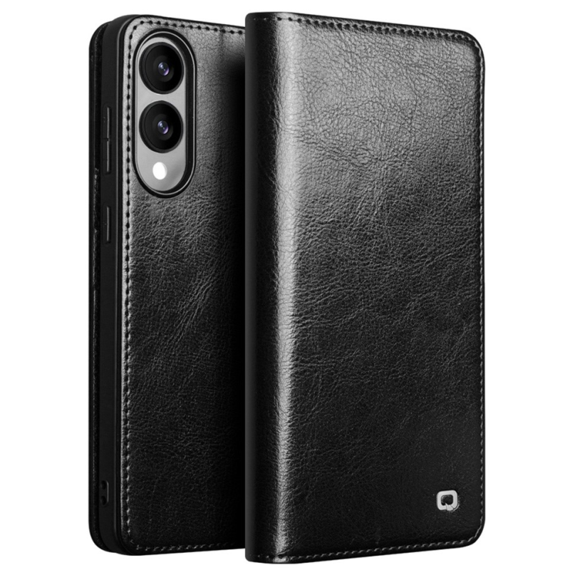"QIALINO" atvēramais ādas maciņš - melns (Galaxy S25 Edge)