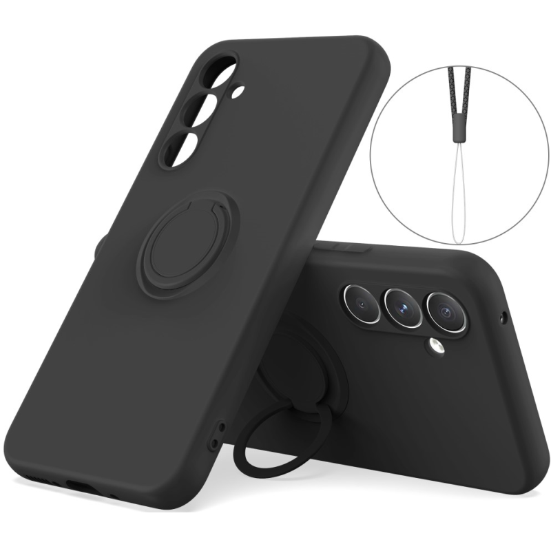 "Dechen" Ring Kickstand cieta silikona (TPU) apvalks - melns (Galaxy S25)