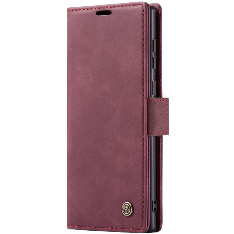 "CaseMe" Retro solīds atvēramais ādas maciņš - bordo (Galaxy S25 Ultra)