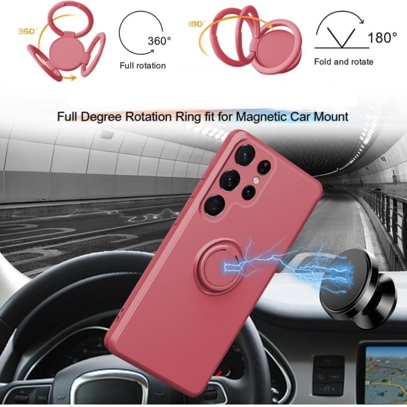 "Dechen" Ring Kickstand cieta silikona (TPU) apvalks - sarkans (Galaxy S25 Ultra)