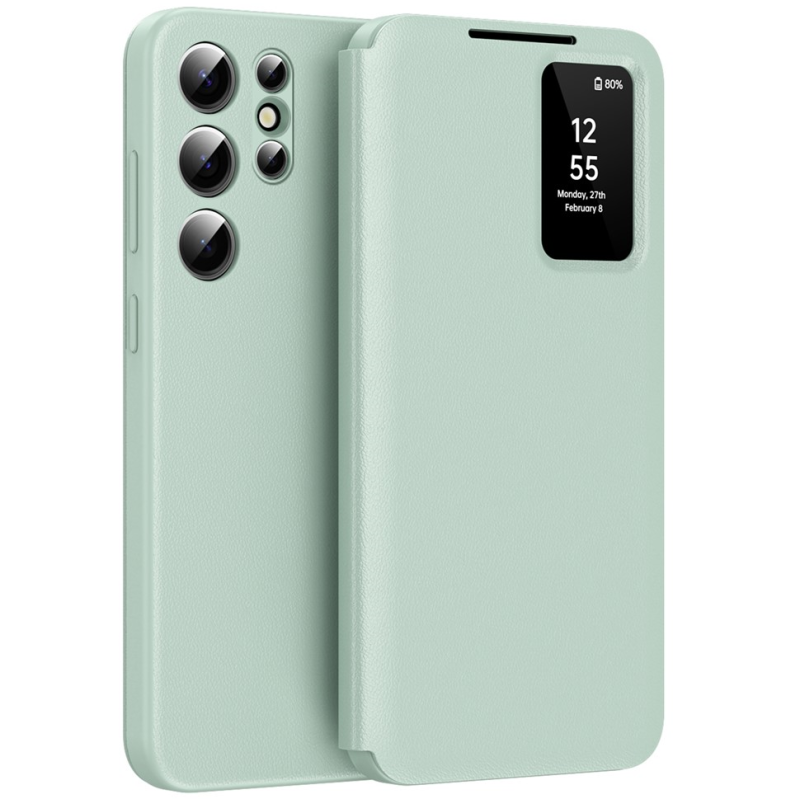 Samsung Galaxy S25 Ultra "Qing" Smart View solīds atvēramais maciņš - zaļš | Vacins.lv