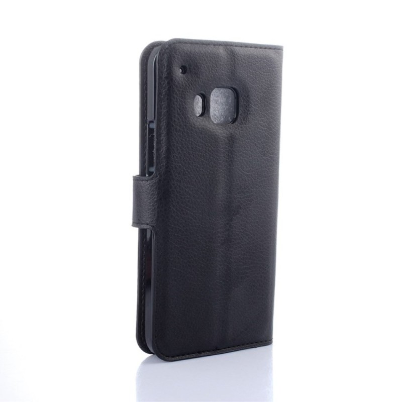 HTC One M9 atvēramais melns ādas Litchi maciņš (maks) / Vacins.lv