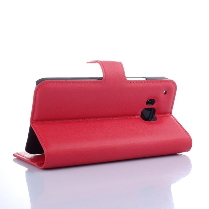 HTC One M9 atvēramais sarkans ādas Litchi maciņš (maks) / Vacins.lv