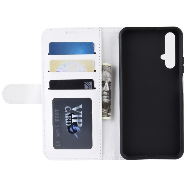 Huawei Honor 20 (Nova 5T) atvēramais ādas balts maciņš, grāmata (maks) / Vacins.lv